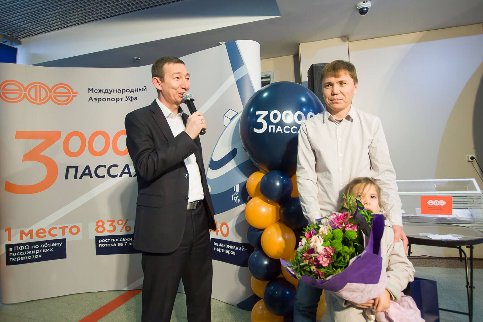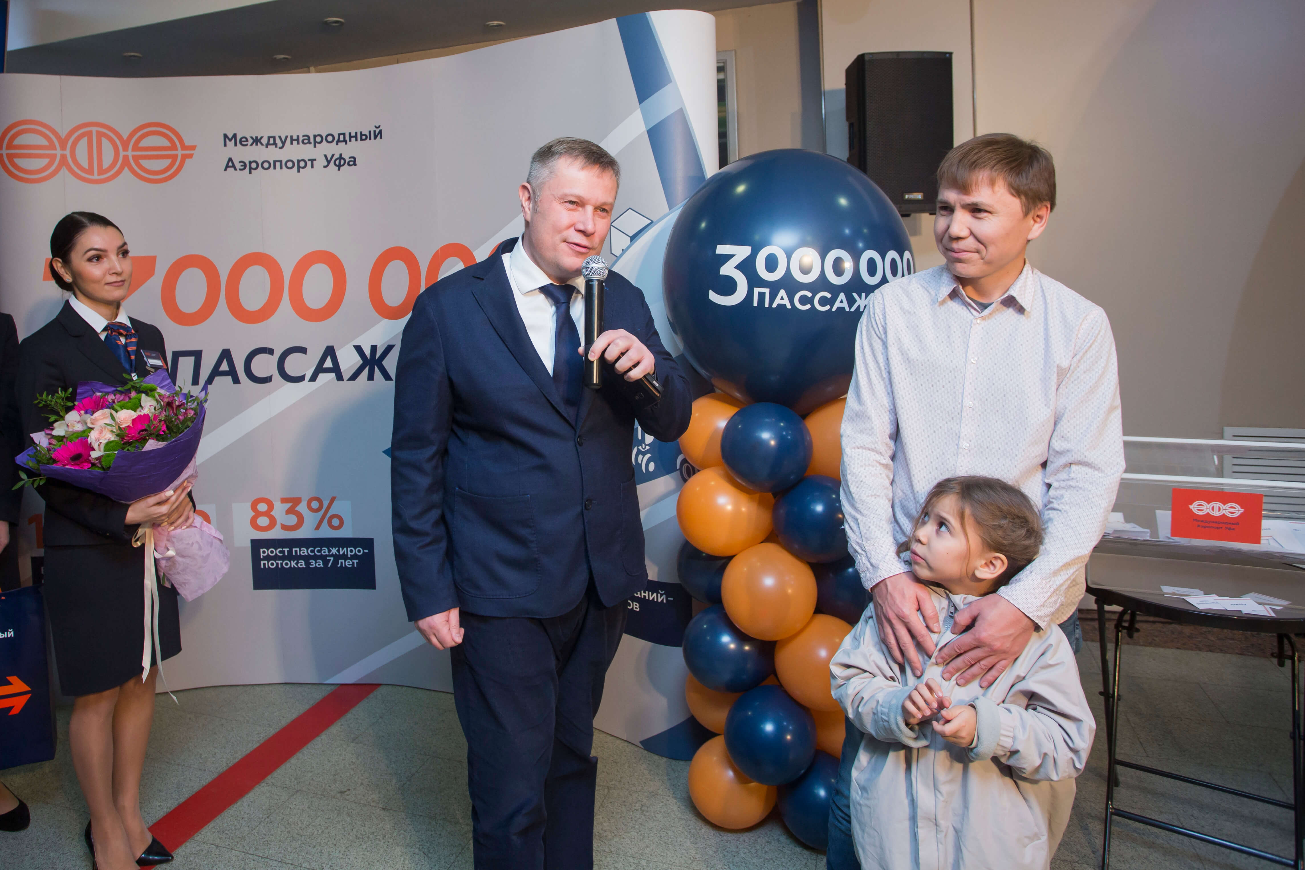 — Встреча 3-хмиллионного пассажира является знаковым событием как для аэропорта, так и для всей республики, — подчеркнул в своем выступлении генеральный директор аэропорта «Уфа» Александр Андреев. — Предприятие демонстрирует устойчивые темпы роста — за 7 лет пассажиропоток увеличился на 83%, — опережающие среднеотраслевые. Если в прошлом году средние темпы составили 10%, то показатель аэропорта «Уфа» — 17%.
